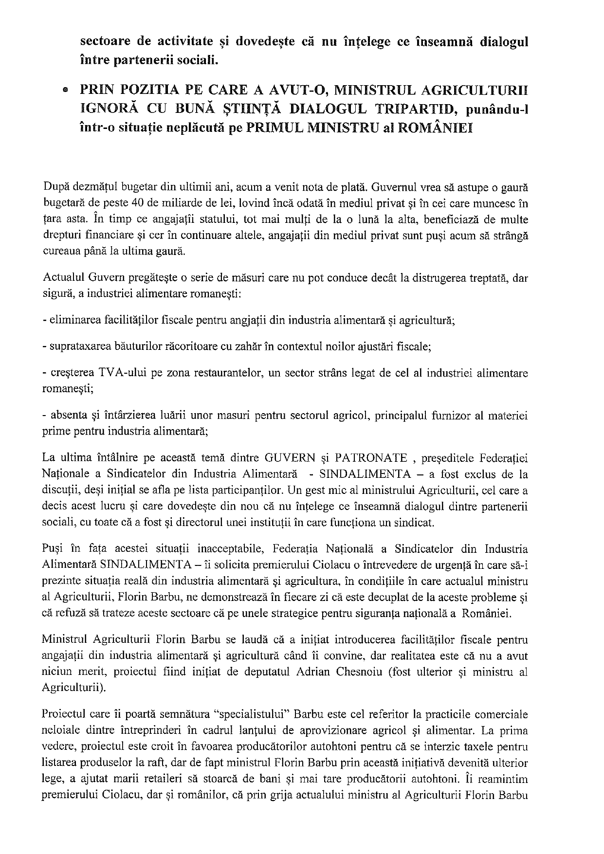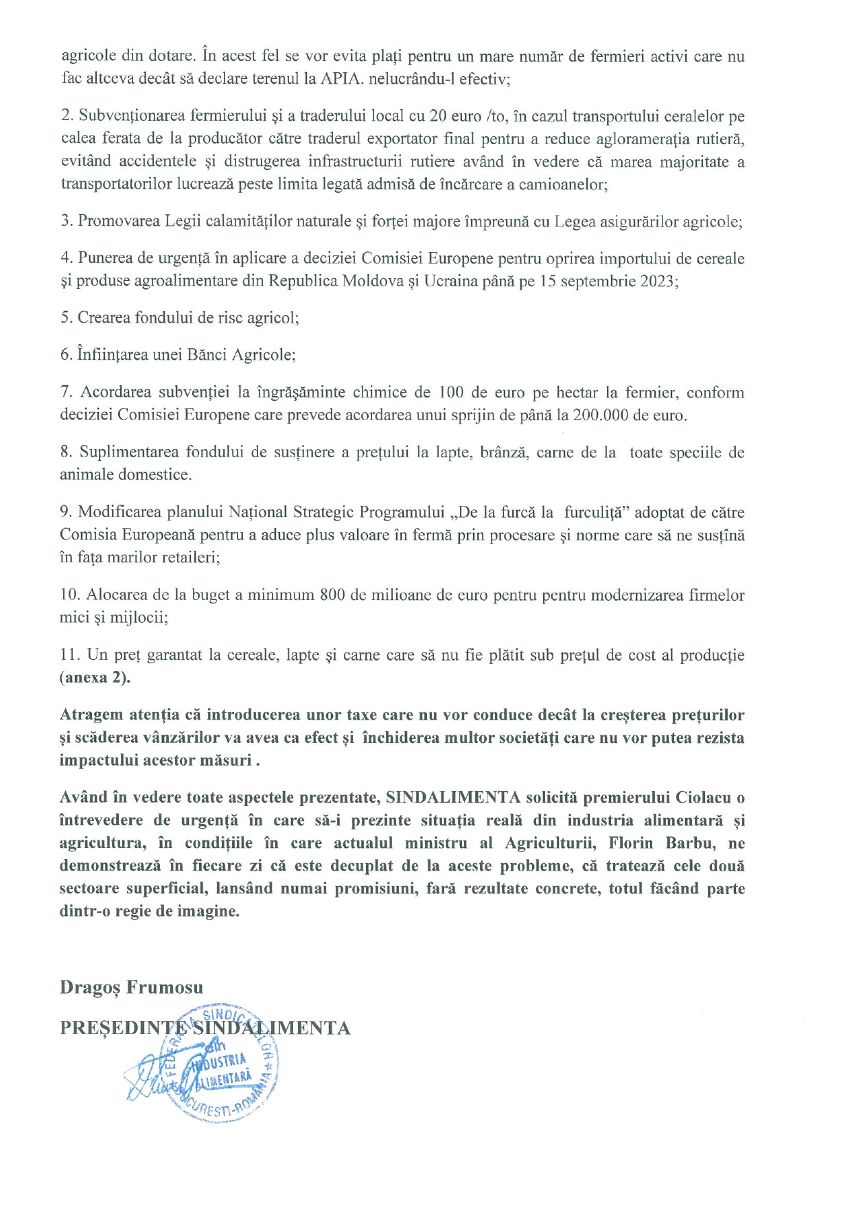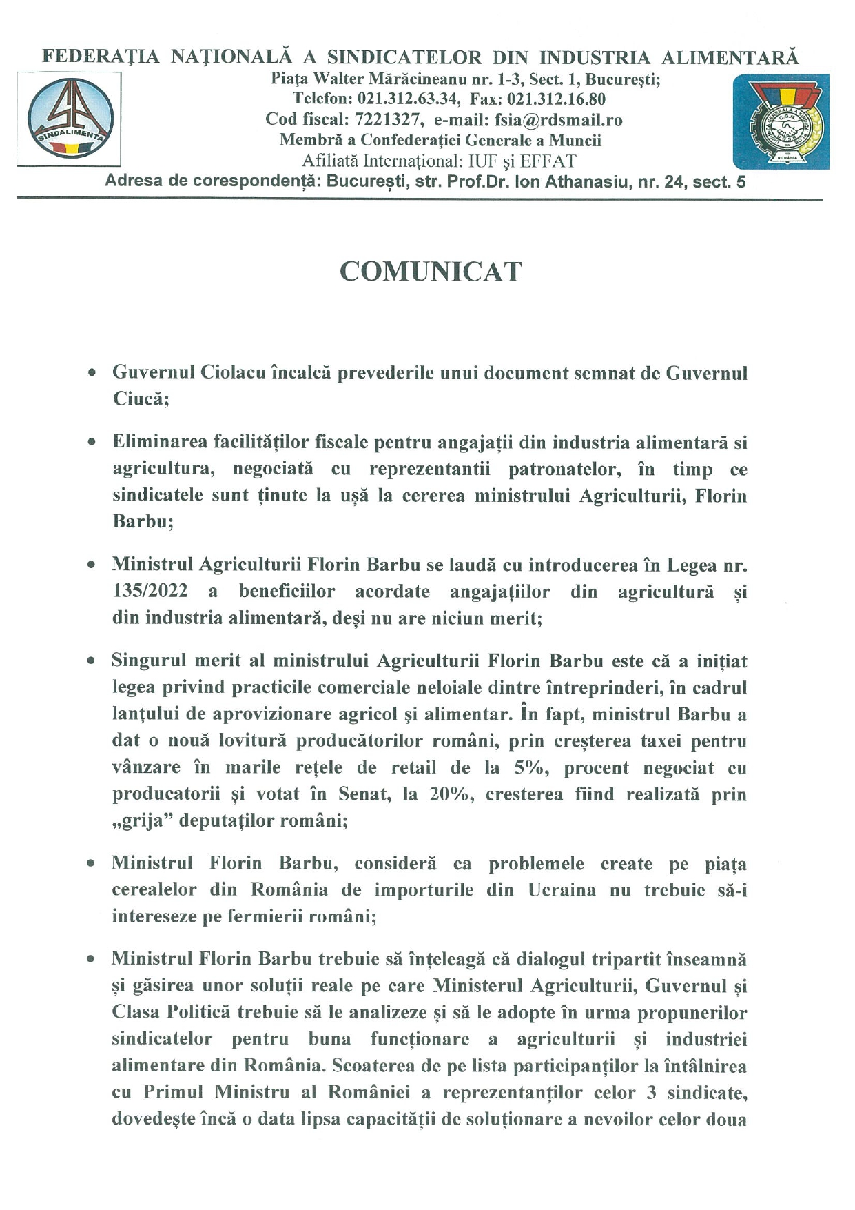 Sindicatele din industria alimentară: ”Guvernul Ciolacu încalcă prevederile unui document semnat de Guvernul Ciucă” de Secretariat UGSR · 20 iulie 2023