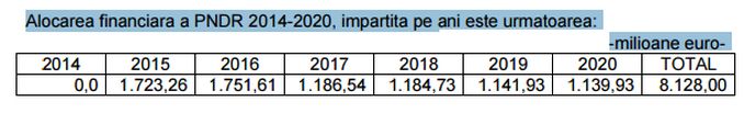 Alocarea financiară a PNDR 2014-2020, împărțită pe ani este următoarea: