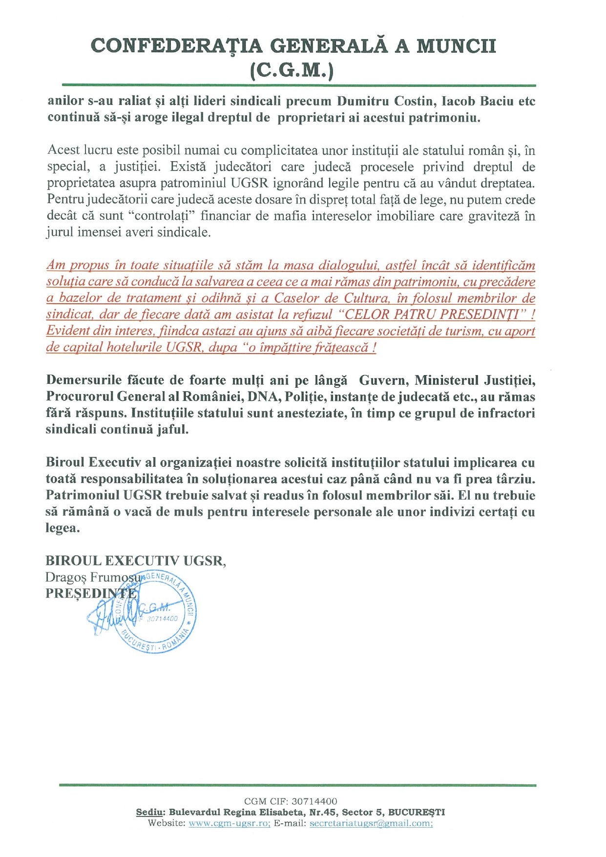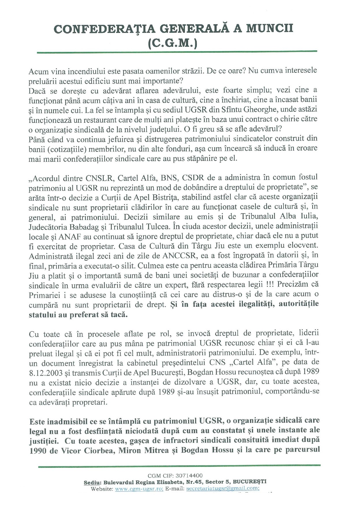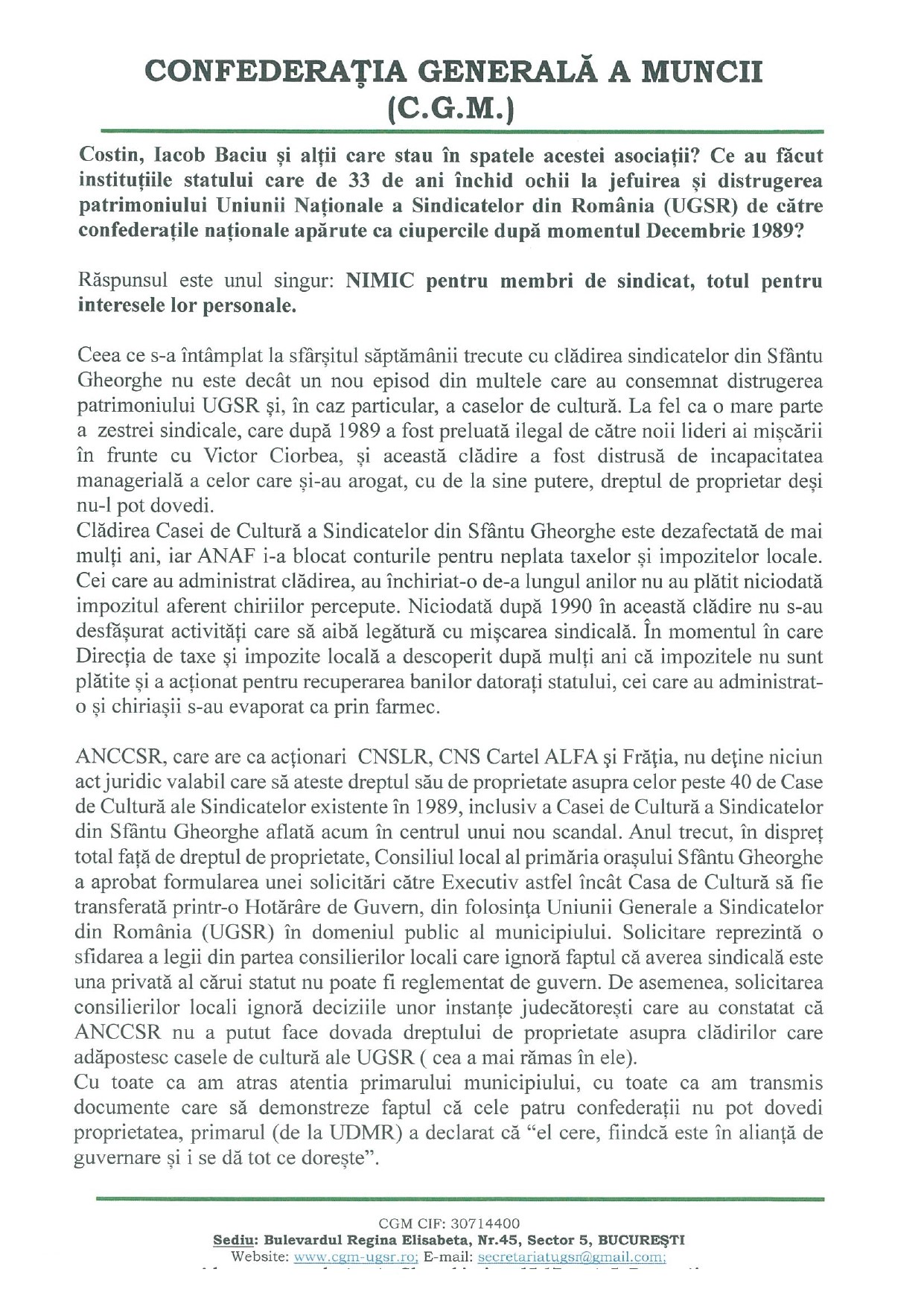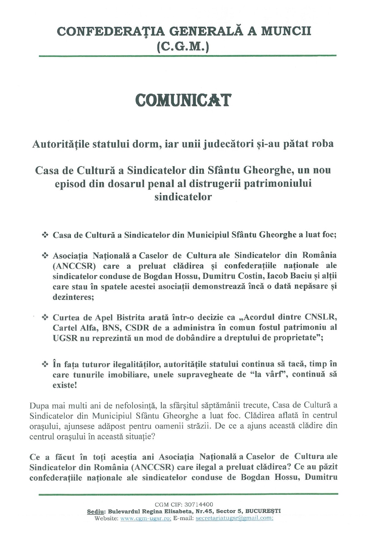 Comunicat – Casa de Cultură a Sindicatelor din Municipiul Sfântu Gheorghe de Secretariat UGSR · 30 octombrie 2023