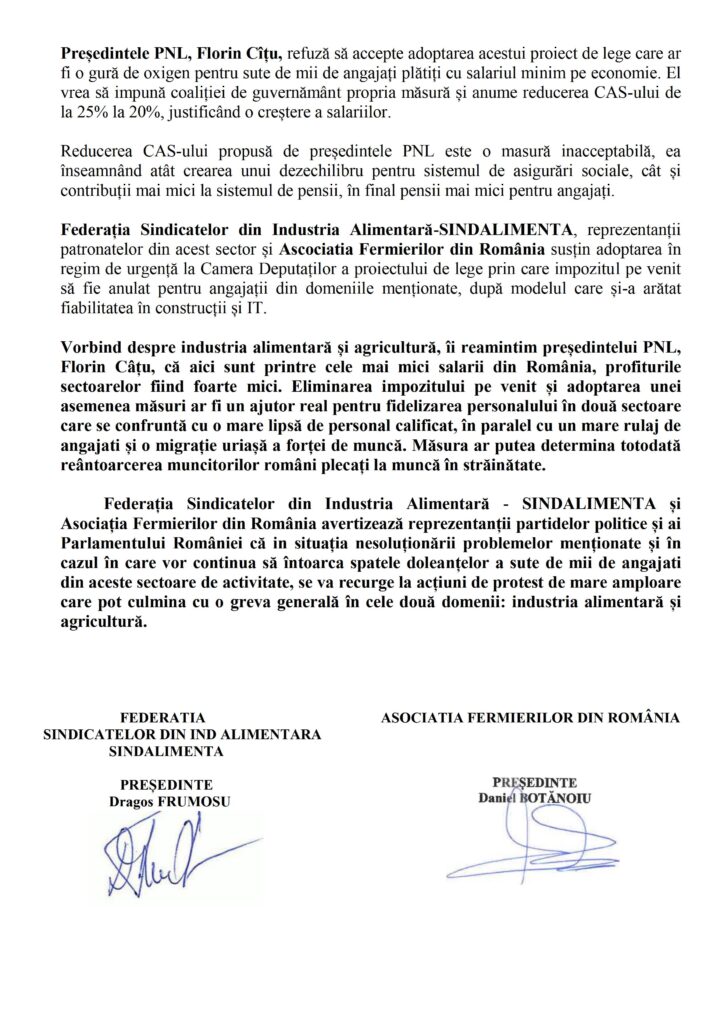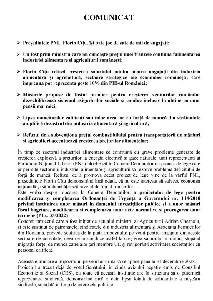Comunicat modificare salarizare in industria alimentara de Secretariat UGSR · Publicat 18 martie 2022 · Actualizat 18 martie 2022