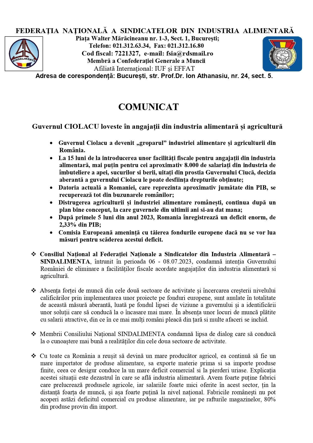 Guvernul CIOLACU loveşte în angajaţii din industria alimentară şi agricultură de Secretariat UGSR · 18 iulie 2023