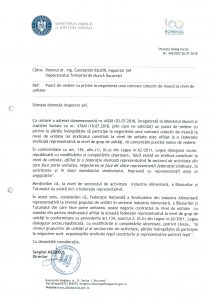 entru exemplificarea atasam mai multe raspunsuri transmise de Ministerul Muncii și ITM prin care se confirma dreptul de negociere a contractului colectiv de munca la nivel de unitate de catre Federația Nationala a Sindicatelor din Industria Alimentară.